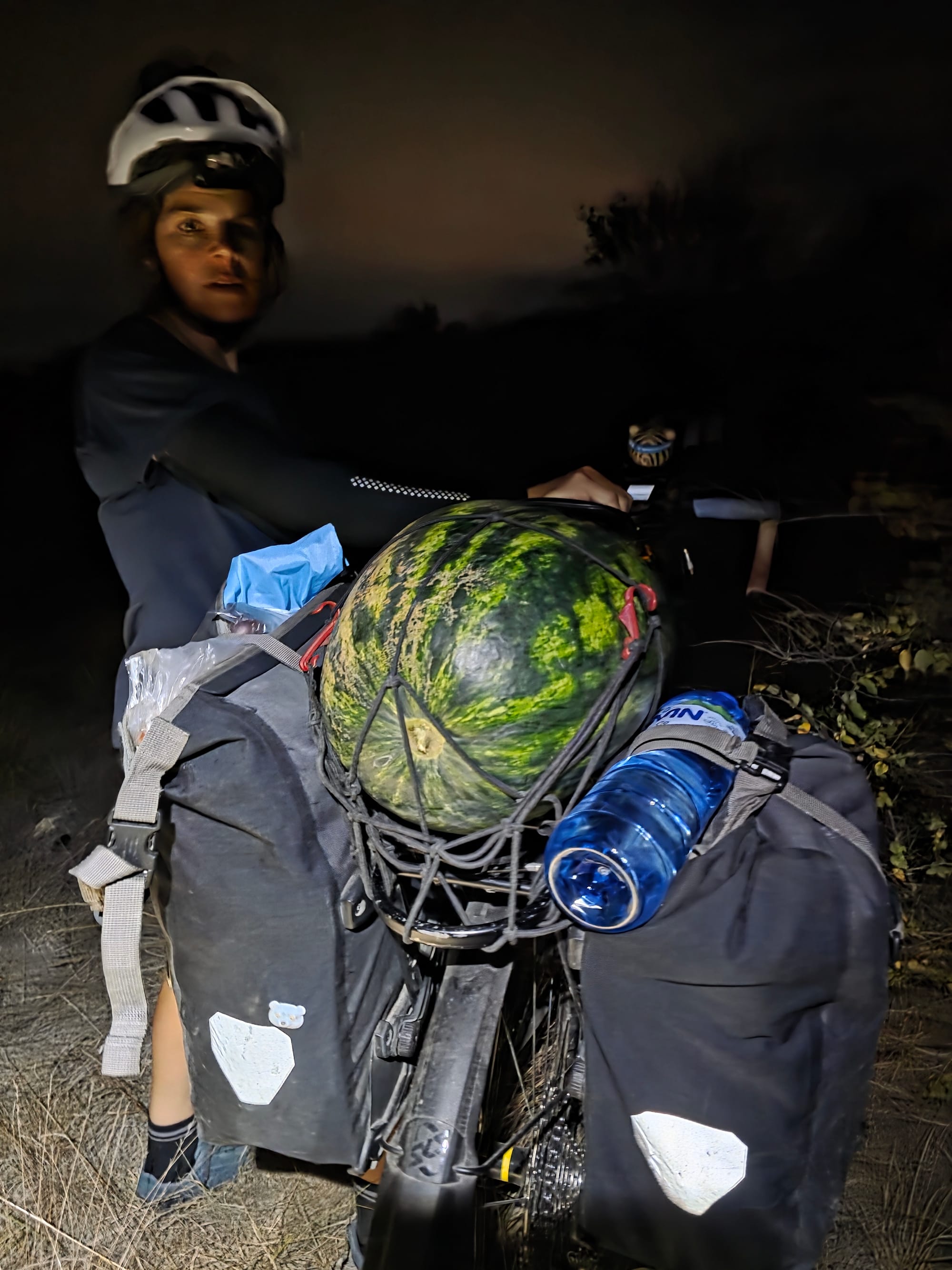 Once again we were pedalling into the dark, this time armed with a 6kg watermelon which had been donated to us for dinner while asking for water. We crossed into Greece (another country ticked!) and quickly found we couldn't camp where we'd planned as a) it was not possible to get off the motorway/main road and b) there were police waiting in the tracks. Eventually we got to a junction and to a campsite next to a quiet field before we hit more towns and then the Turkish border!