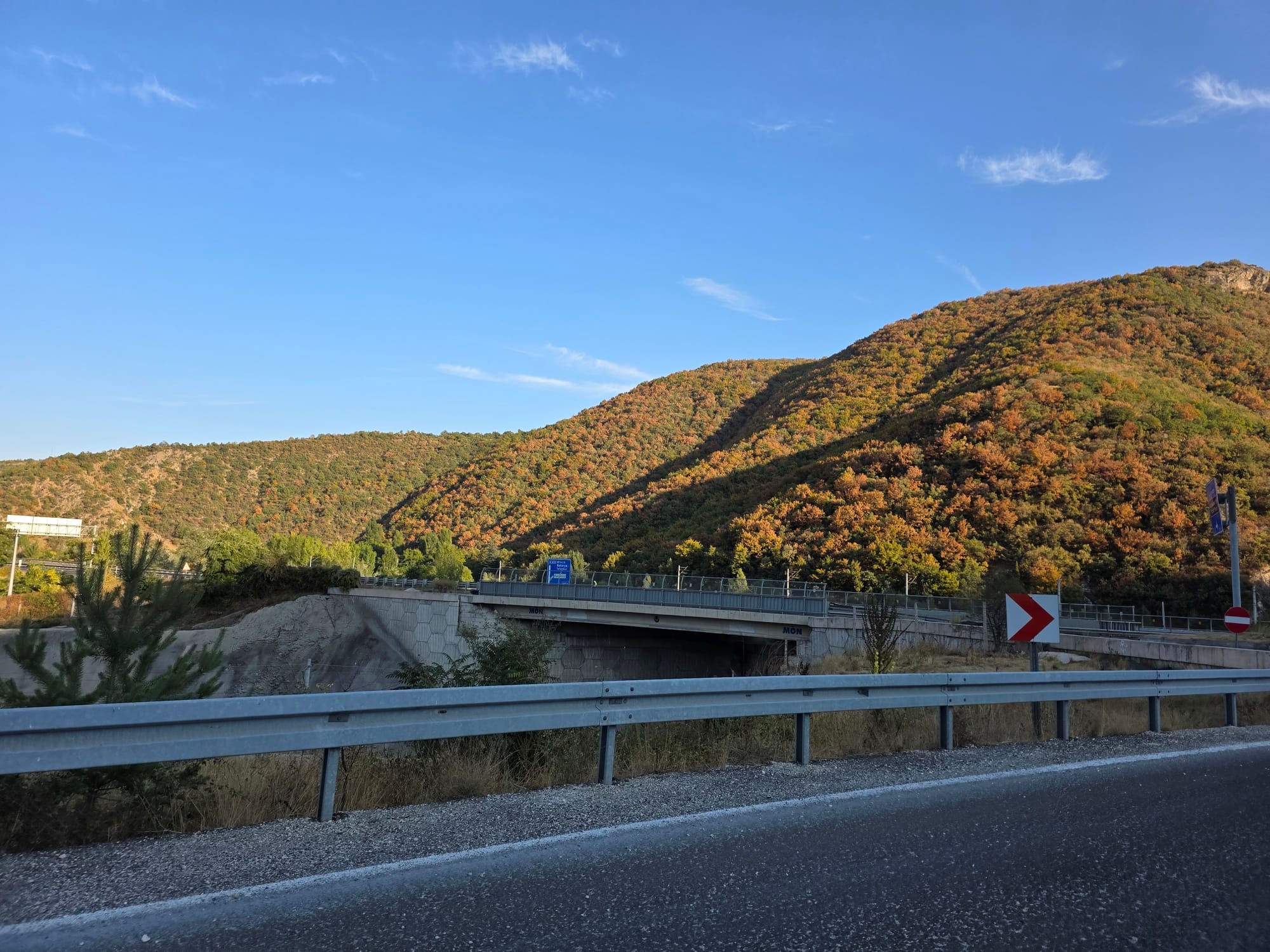 At some point the route took us onto the big dual carriageway we'd been avoiding all day in a pinch point between two mountains and we immediately teleported up a hill. It was like we'd got on a train not a big road. Fast, uphill, low effort - pick 3 apparently! And ironically also the best bike lane in the country provided by the full width hard shoulder. I guess that's what a tailwind and a smooth straight road will give you.