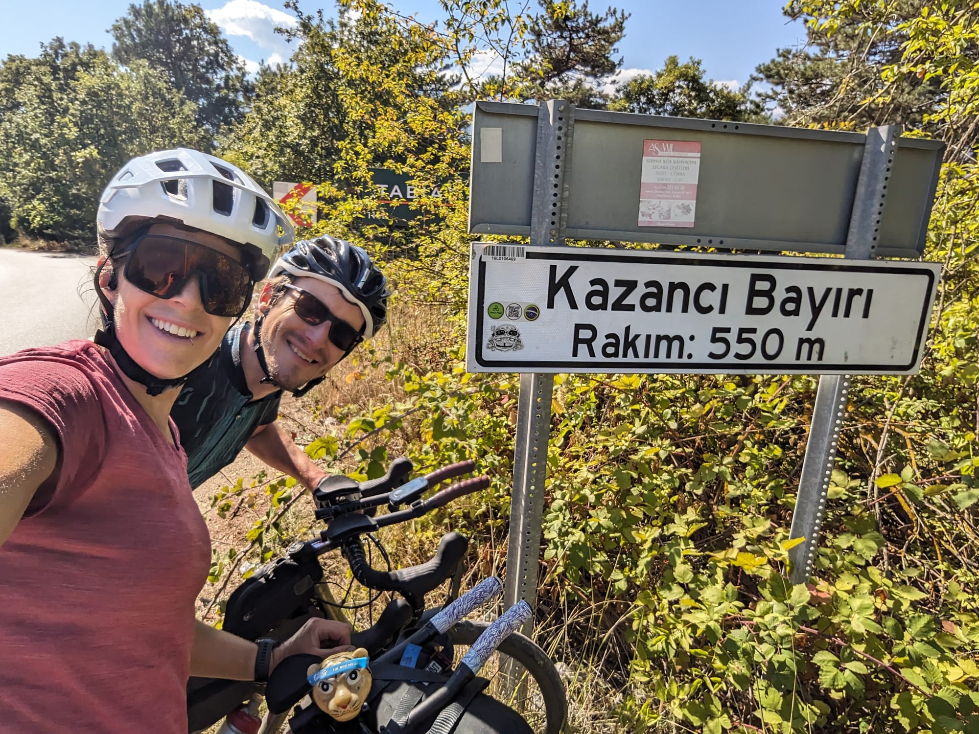 The morning was hilly, and initially a repeated experience of getting dusted by an endless stream of lorries going to and from the industry outside of Bursa, but rapidly improved into the nicest roads we've had in Turkey yet! Even the rubbish by the side of the road diminished as we climbed between small villages on almost alpine roads and very few cars passed.