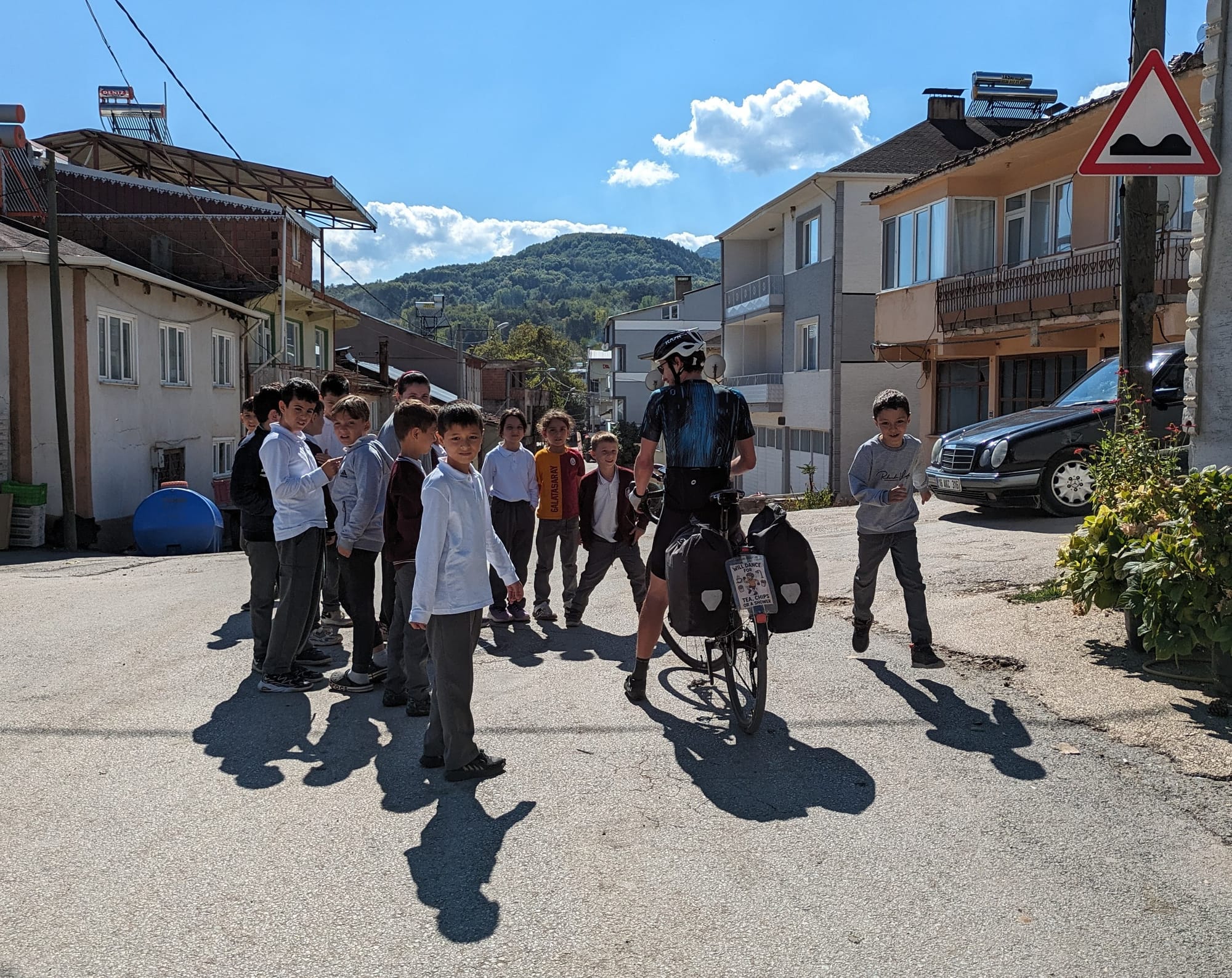 People are so nice here. They honk and wave as they go past on the road, everyone from lorry drivers to boy racers, they come over to introduce themselves in the villages and they frequently produce a tomato or loaf of bread with a gesticulation that it's for strength to get up the hill. For example, a young guy living in a village outside of Bursa who studied at the local university but returned to the village he loved to take over the family business and was just excited to see travellers coming through. Or the strawberry seller who was very excited to take a picture and have a chat, even if it was through the medium of hand gestures, but who seemed genuinely happy to see us (good strawberries too). Or the kids who pointed us towards the food and produced bottles of water to give us.