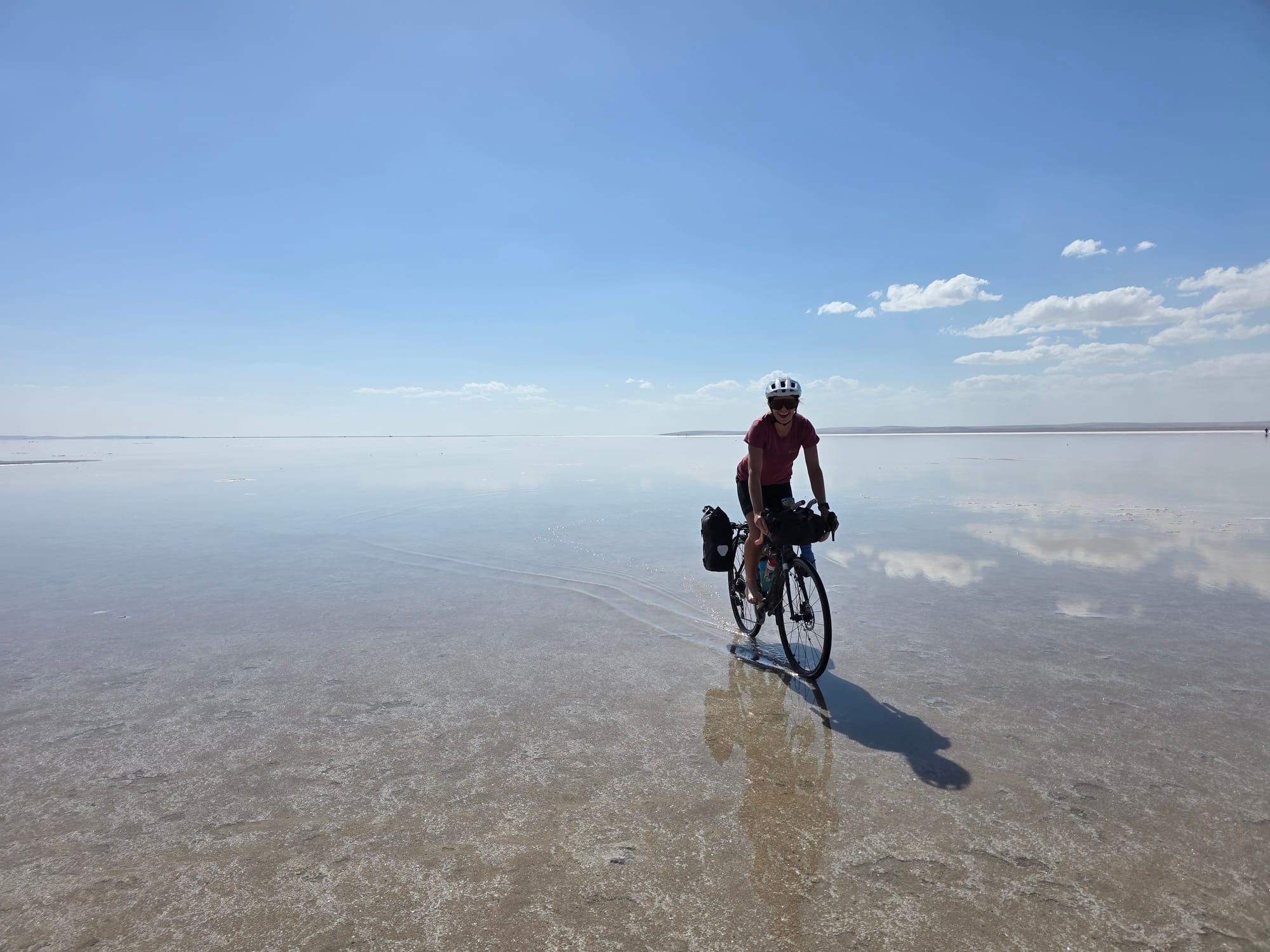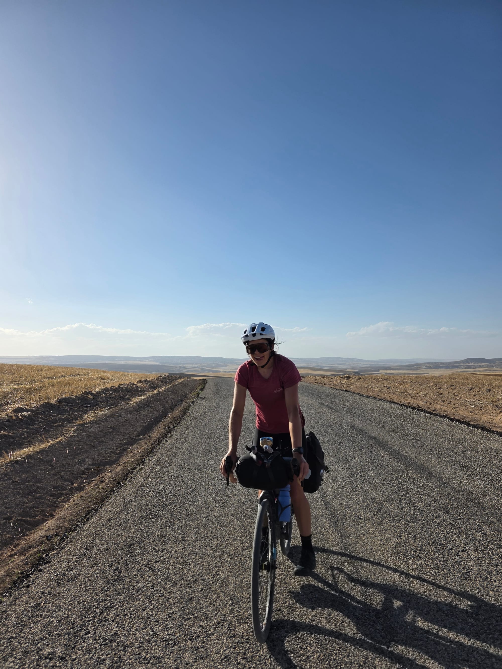 The scenery changed dramatically again as we did so, and the dried water taps further added to the desert feel! Eventually we found a working one, drunk our fill and I managed to wash my cycling top (it's been 4 days), hair (it's been 4 sweaty days) and legs (it's been...you get the idea) setting off again feeling very fresh indeed, and dry within minutes thanks to the hot sun and strong wind. Like within 10mins from dripping to dry t-shirt!