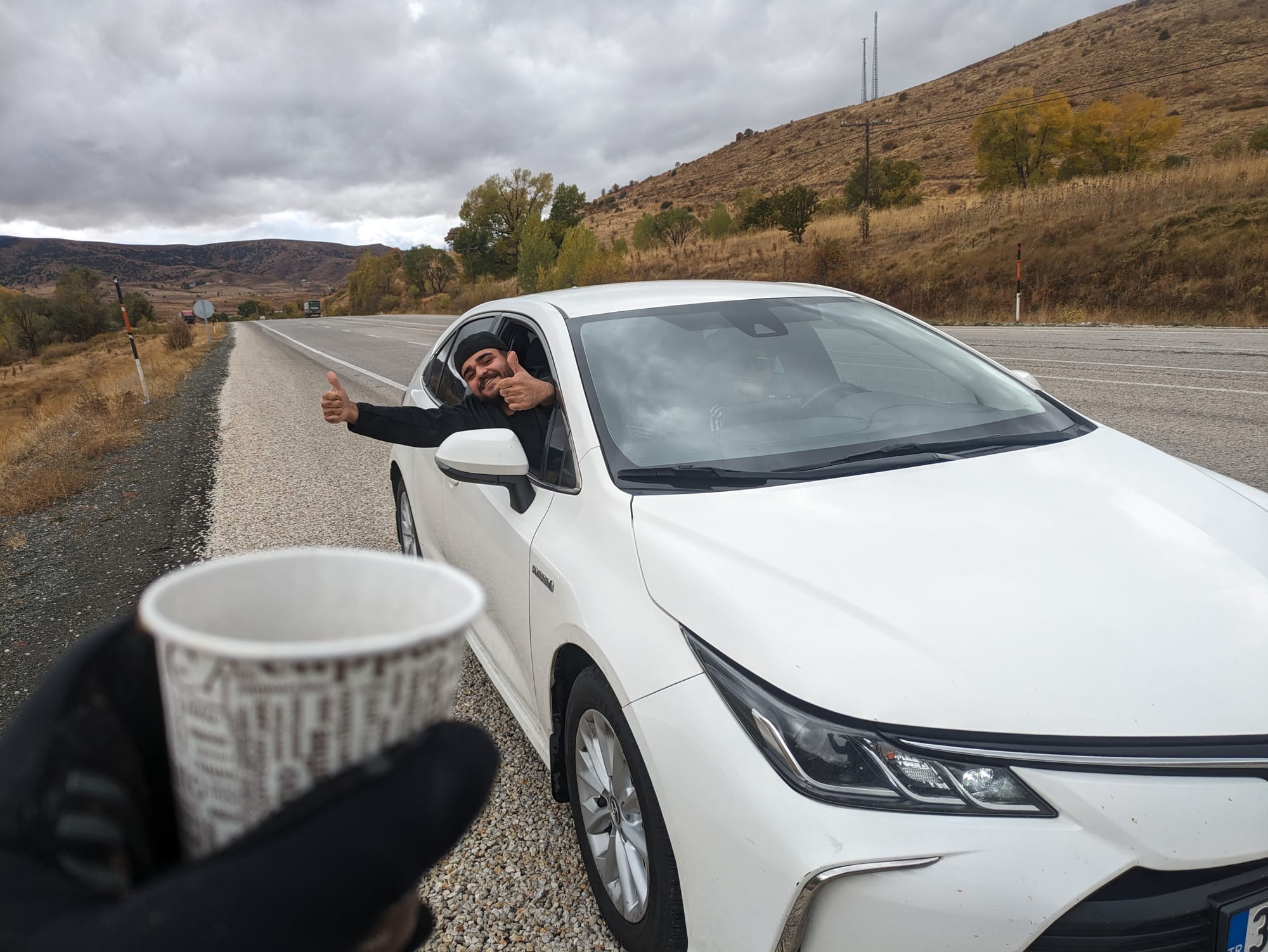 While she was solo, a driver pulled over, posed on his car and offered Emma an apple, then promptly asked for her phone number. She just took the apple. We've split up similarly a fair bit and that was the first time. Turkey otherwise once again delivered on that hill though. I was going along craving a cup of tea after said sugar hit, and just as I thought it a car pulls over, and produces a double thermos - would I prefer tea or coffee? A short conversation later and I also had two juices, a pastry and water pushed upon me! I did disappoint with my knowledge of English football though.