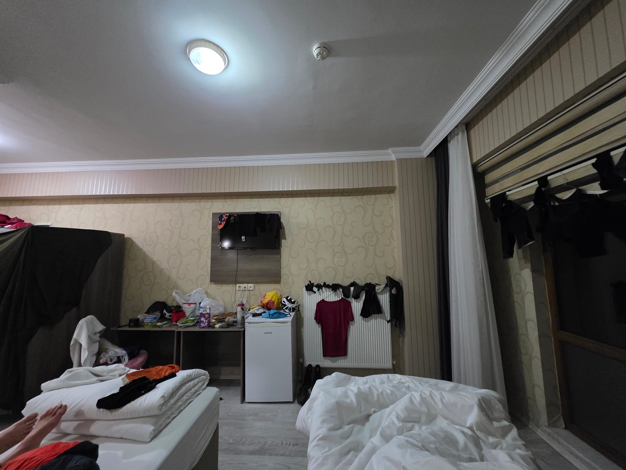 In the meantime the Swiss tourer was networking for us, and I received a message from a random Turkish number - someone he'd met who was out of town but trying to arrange for us to stay with his friend! Sadly the friend had to go to hospital so it didn't work our, but it was a very nice try!Now we're tucked up in a cosy hotel, after a long hot shower and we've turned the room into drying carnage! Bliss 😁