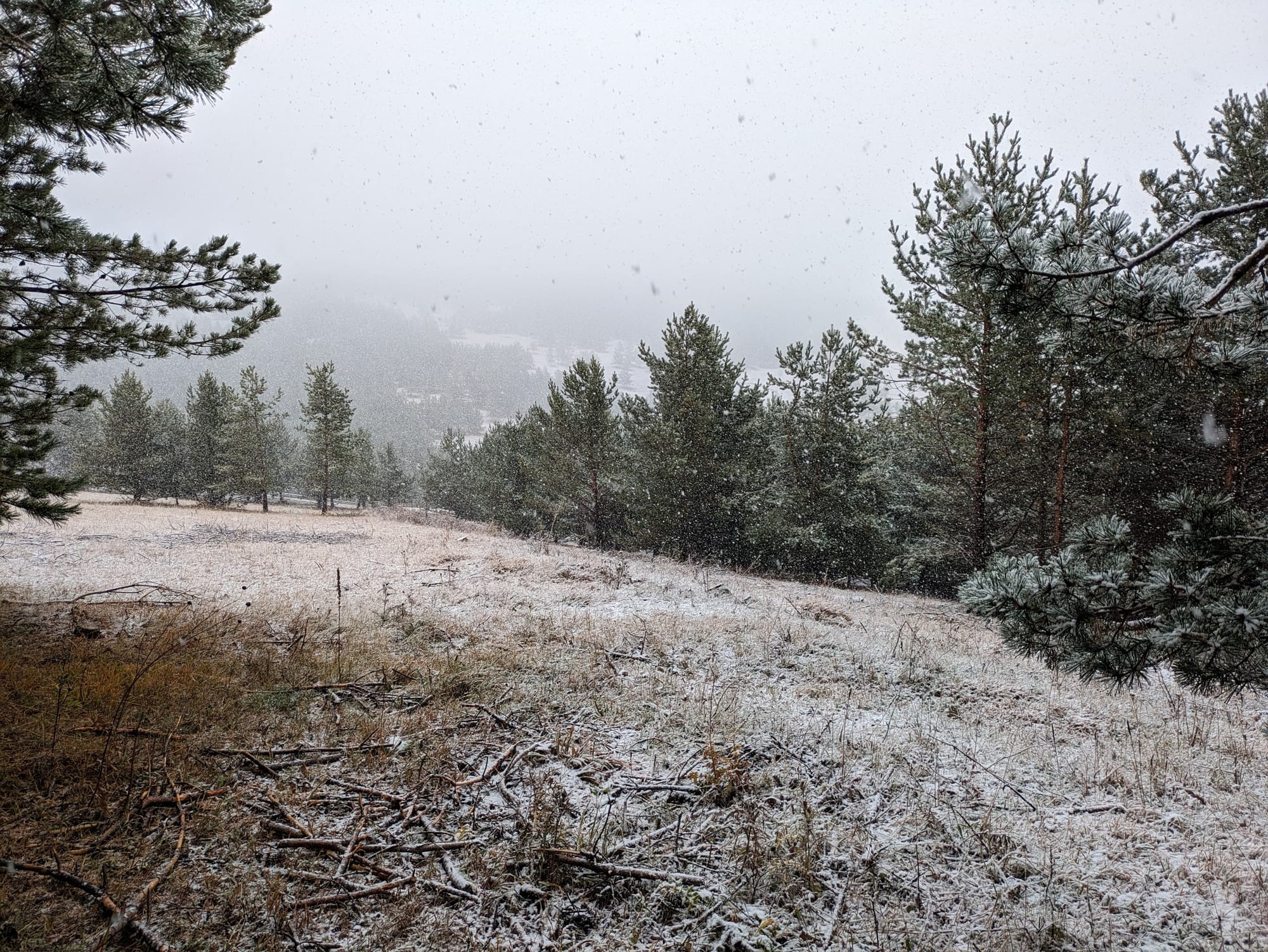 We had a lie in, knowing it was going to be grim and the tent was well hidden. After an extensive breakfast and pack up inside the tent we opened the door...to snow! Beautiful, but cold, very cold.