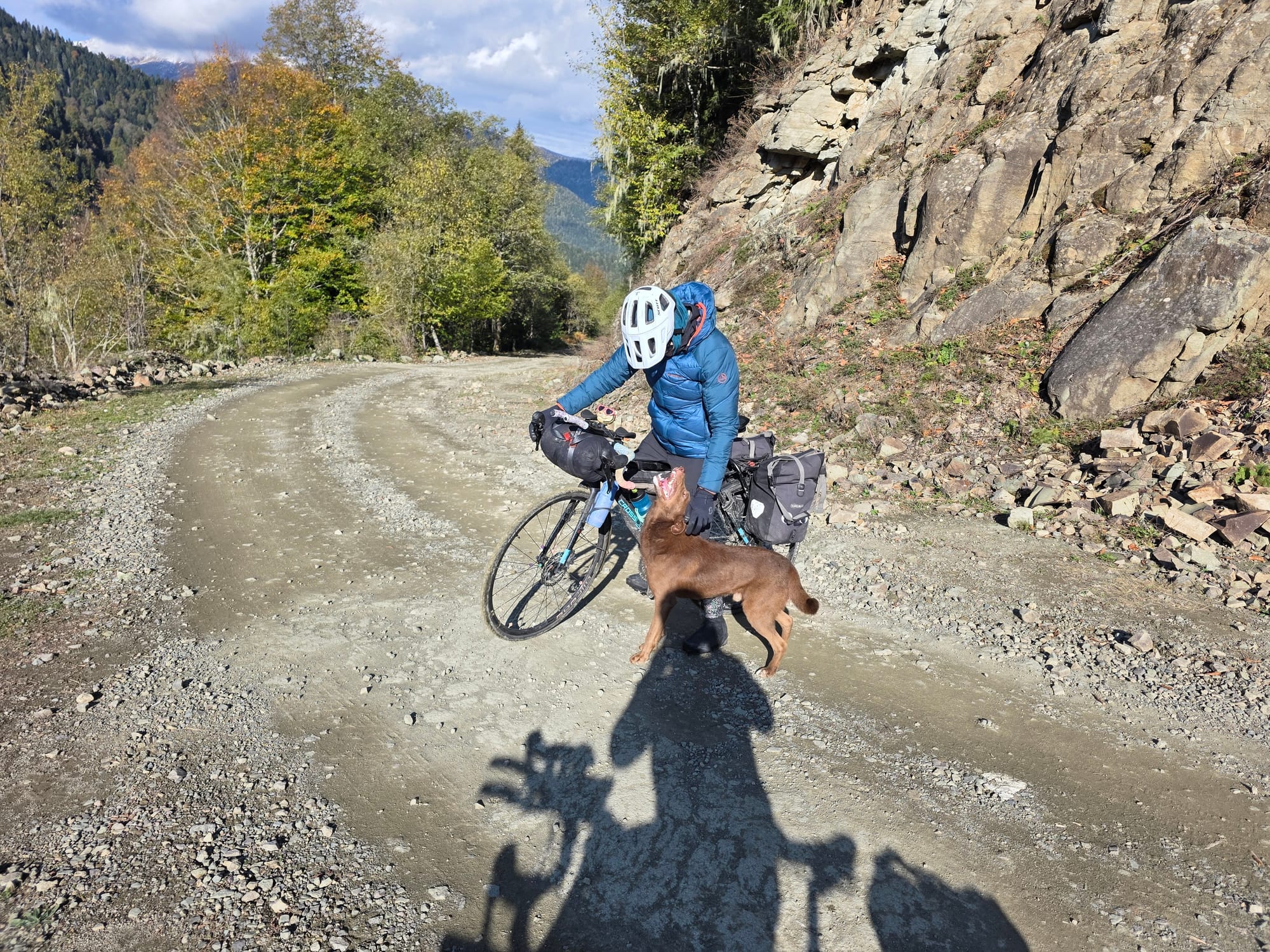 The descent was similarly gorgeous to the ascent, through the autumn colours on mostly smooth tracks, accompanied by our "trail dog" who'd appeared outside of the tent that morning. We finished with a distinct feeling "yeh that was good".
