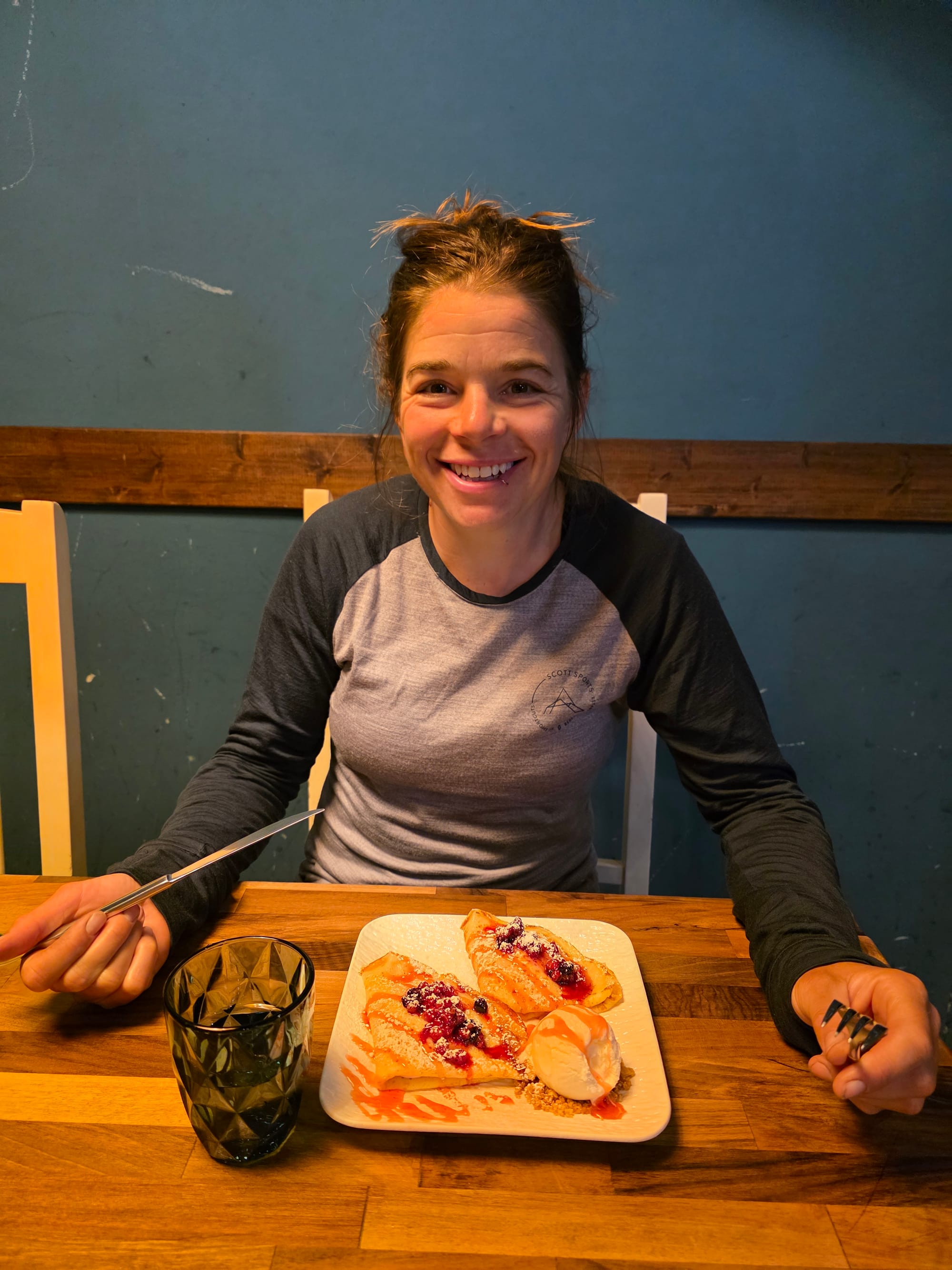 The night wasn't as cold as expected, wrapped up as we were, and the views were awesome! I did a double-take while talking to Emma in her full black outfit and white helmet, only for her to teleport 40m ahead. Of course, it wasn't Emma but another female cyclist dressed exactly the same! Took my slow morning brain a minute that though π .