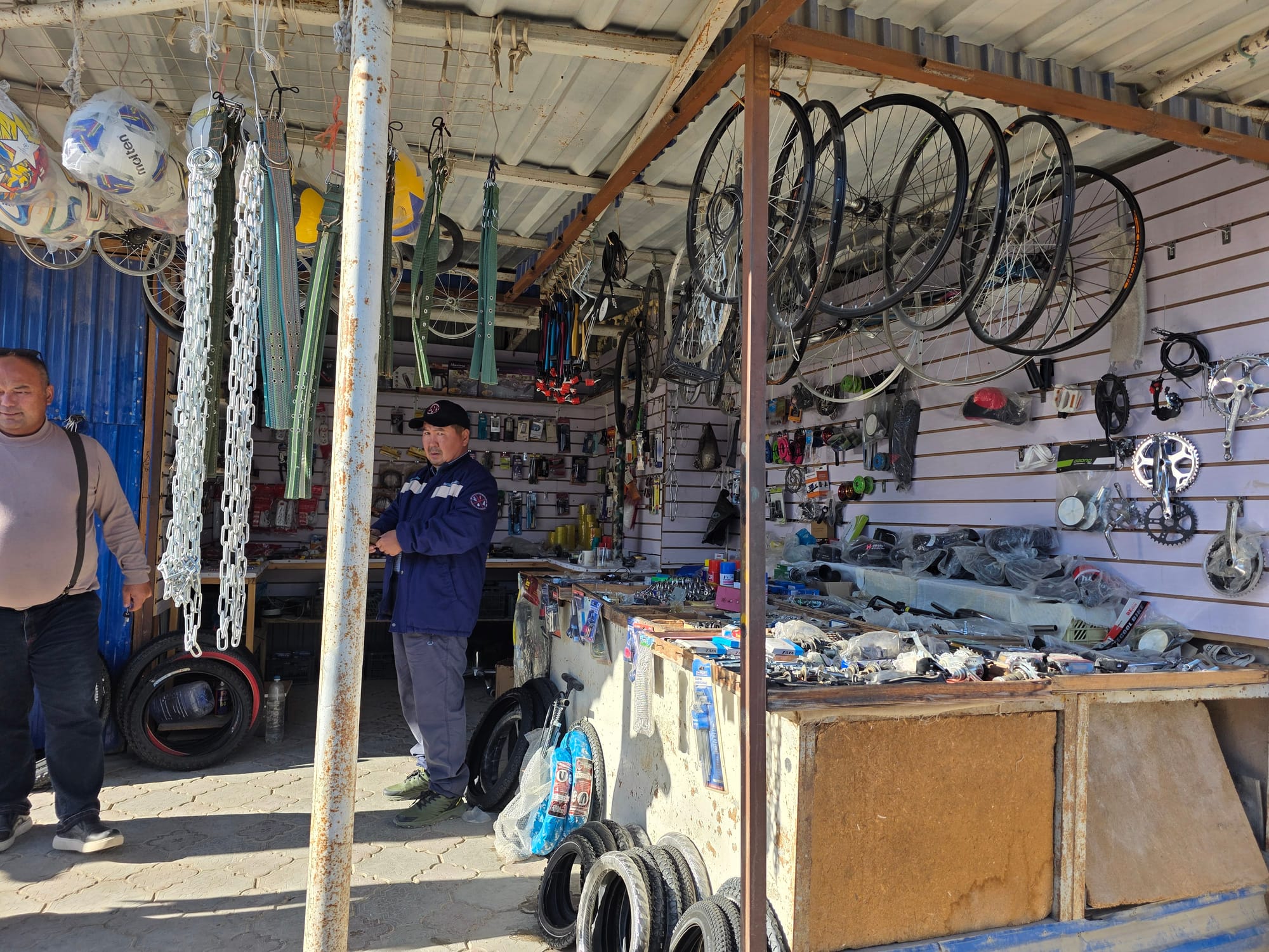 We were not however, efficient, despite our best efforts. In fairness to us shops were hard to find, often in apartment blocks way off of the street or buried in big shopping centres. We managed to get all of the layers we needed in an outdoor store, and a screen protector for Emma's Garmin and headphones in the same centre, but had failed to find the first bike shop by 12:00. We back tracked again to counter my sugar dip with a bubble tea, and got chatting to an employee there who gave us some great tips about the steppe we're heading out to, and where to find the bike shop which has moved, thanks Askar!