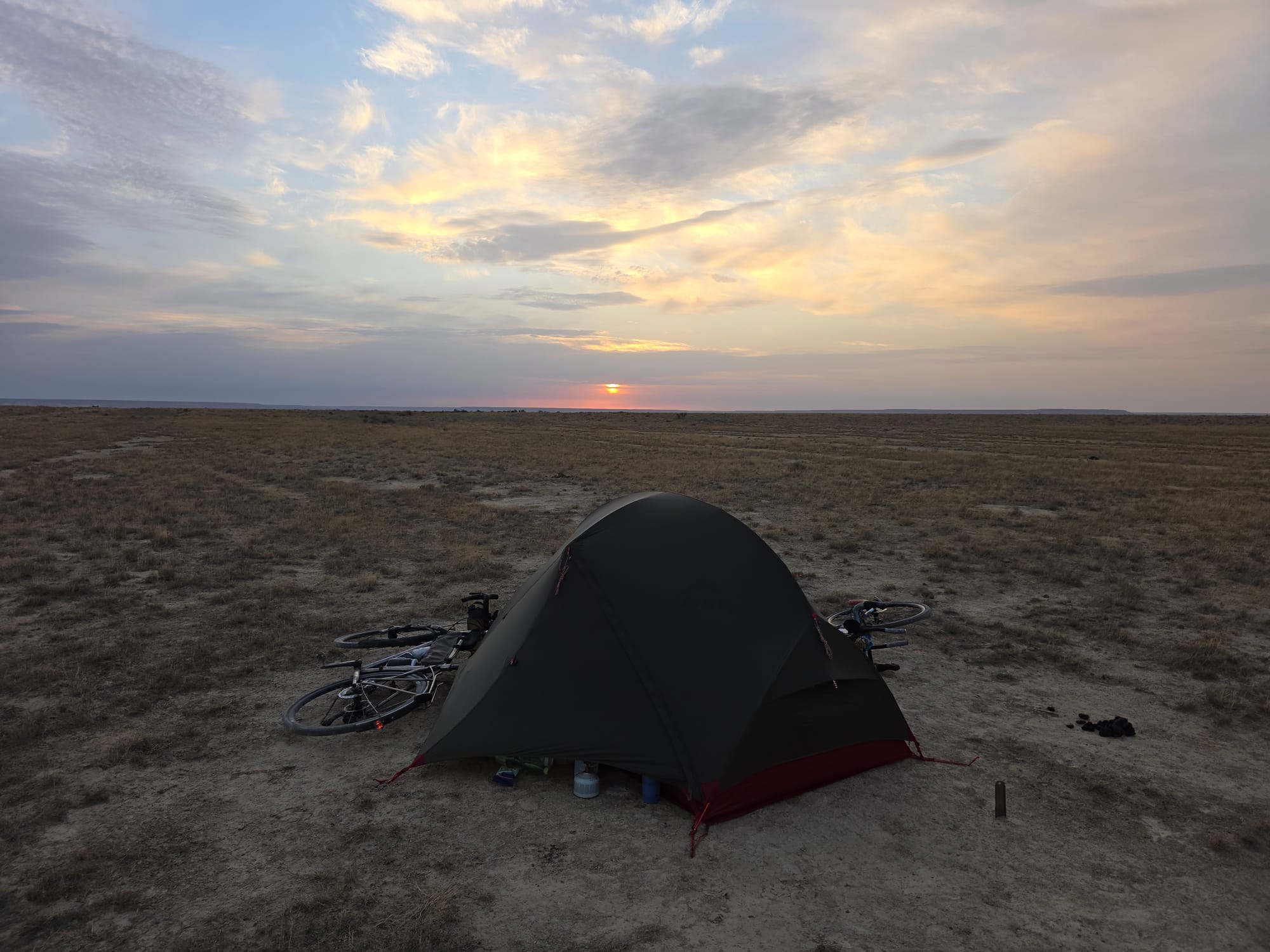 The day as a whole was a bumpy, very very windy ride across the Kazak steppe. We're not very remote yet, but it was easy to forget that seeing only tracks and nothing else in every direction!