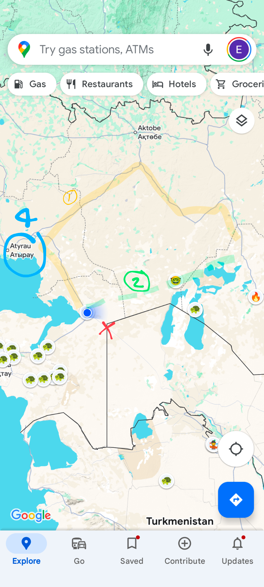 At that point it's 4pm, we're not ready for 600km of remote off-road, there's more faff and research to be done, so we plan to stay another night here . We go back to our hotel, the lady very reluctantly says that there's a room available (we are the only people at the hotel based on the completely empty carpark), but she sounds annoyed that this is going to cause her more work... so we try the next hotel, same type of response, so we try the 3rd... Same response, but didn't want to waste more time, so we annoy the lady at reception by booking in. She snatches Ben's passport off him, mumbles something and doesn't like that she doesn't know where my passport is from. A remarkably strange reception from 3 ladies in a row, when the general attitude to tourists etc. around Kazakhstan has been super positive. Strange.
