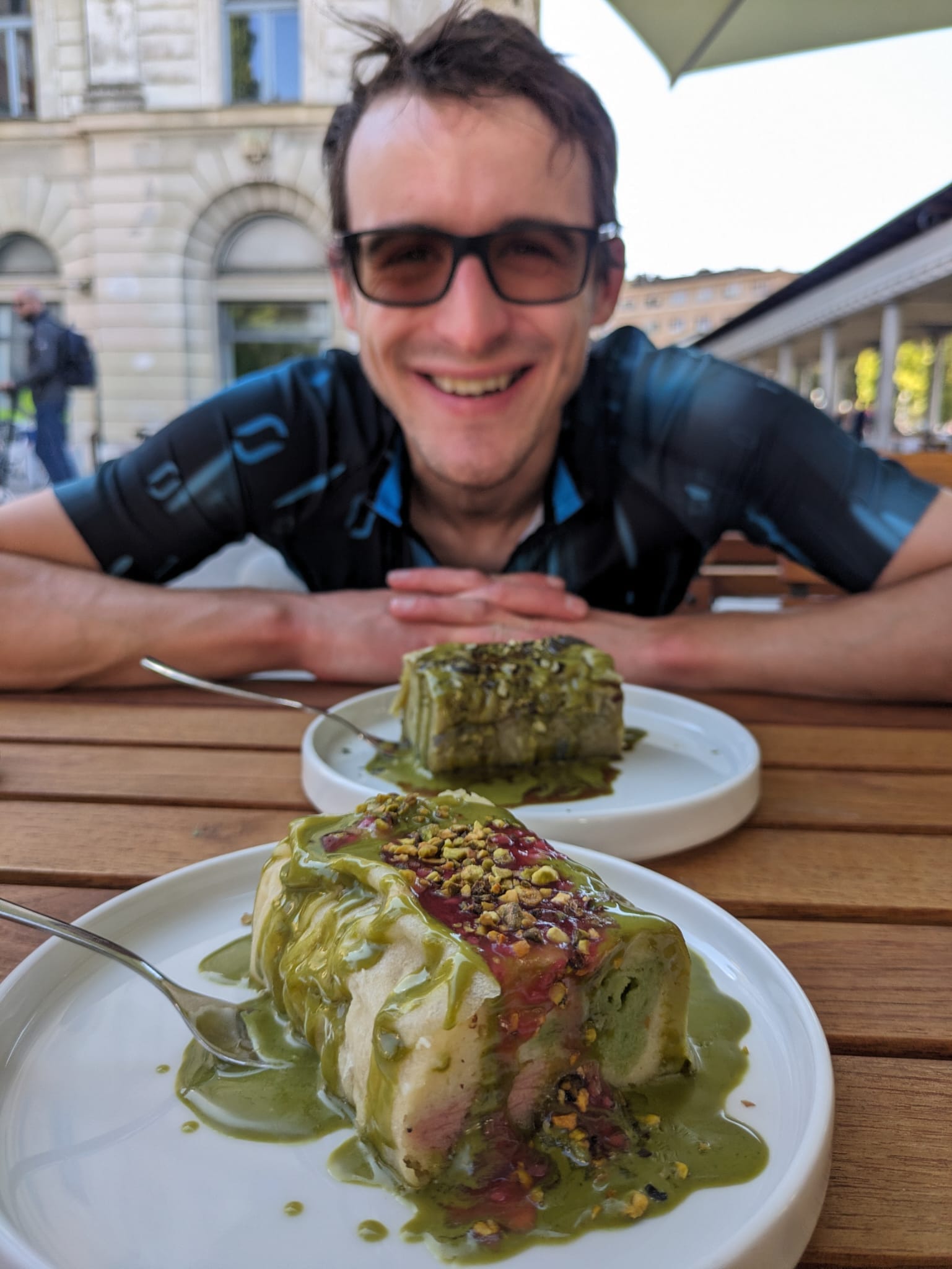 Good stew and pistachio dumplings!