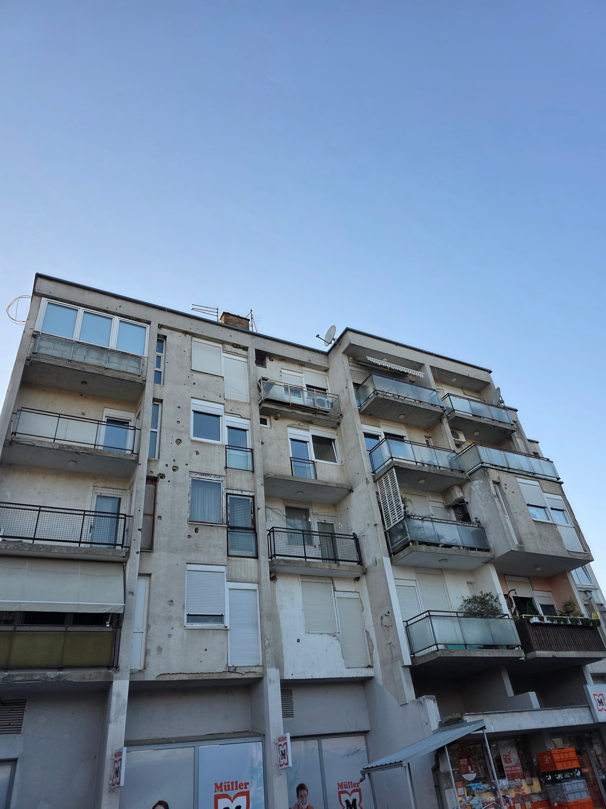 Cycling past houses covered in bullet holes near the Bosnian border was very sobering. A stark contrast to the sunny morning and friendly people waving to their neighbours!