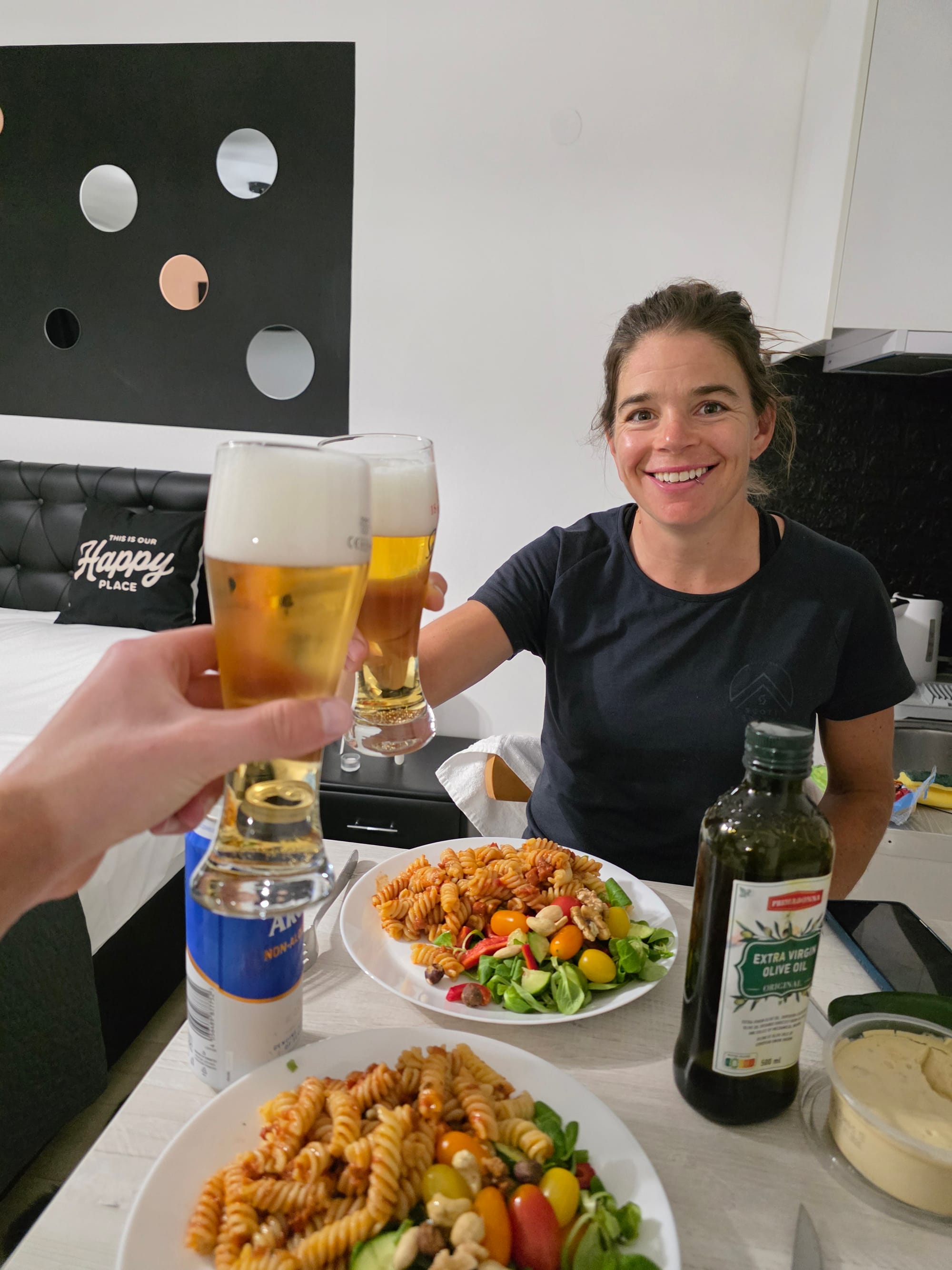 The wind turned to rolling hills which was considerably better than the straight flat roads, and the afternoon slowly went by until we finally made it to the town we're staying in tonight, but not before I'd been hit in the face by a bat while cycling! Not sure if me or the bat was more surprised. Although you realise the calibre of your friends when the person you with knowingly asks "Ah yes, now did you feel the furry body on the lips was worse, or the leathery-skin wings on your face?" 🤣 I'm glad we're treating ourselves to another shower tonight and not a tent in a field after that and the overflowing sewer on the road today!